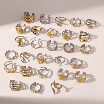 Verstellbare Modische Vergoldete Fingerringe für Damen, Individuelles Design, Anlaufgeschützter Hypoallergener Edelstahl, Offene Ringe