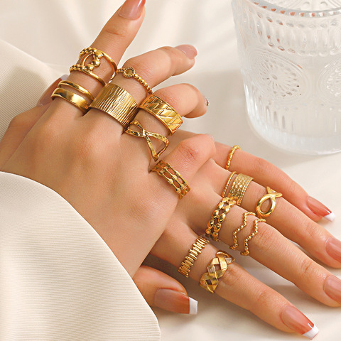 Hochwertiges Anlaufgeschütztes Vintage Ring-Set für Damen, Künstlerische Fingerringe, 18K Gold PVD-Beschichtung, Antiallergisch, 316er Edelstahlringe