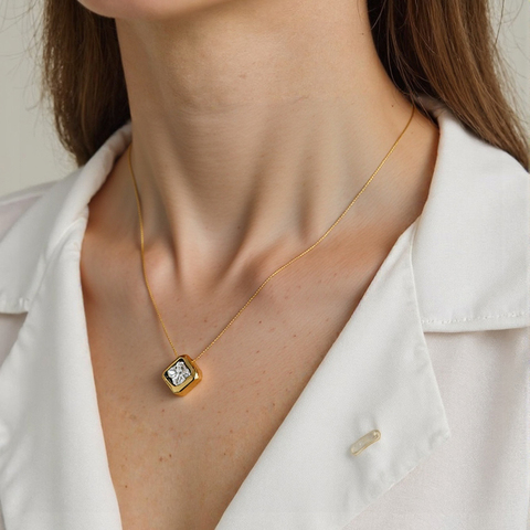 Hot Sale Stainless Steel Square Pendant Necklaces Minimalist Jewelry Gift for Women