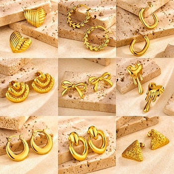 Dames Vintage 18K Vergulde Aangepaste Dikke Oorbellen Waterdichte Grote Oorknopjes Niet-Allergische Rvs Hart Oorbellen