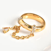Ladies Y2K Hot Selling Stainless Steel 18K Gold Plating Inlaid Zircon Chain Pendant Rings Hypoallergenic for Women